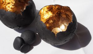 Teelichtschalen groß, schwarzer Ton mit Goldlasur